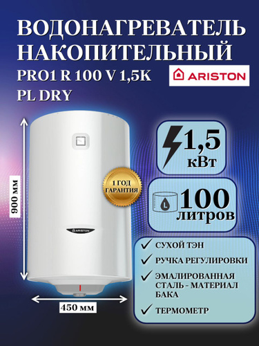 Водонагреватель накопительный ARISTON PRO1 R 100 V 1,5K PL DRY 100л сухой ТЭН