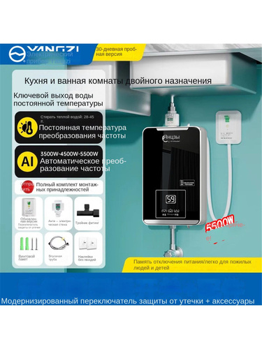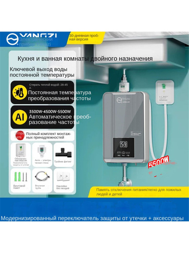 Мгновенный водонагреватель бытовой кухонный кран быстрого нагрева,5500,серый