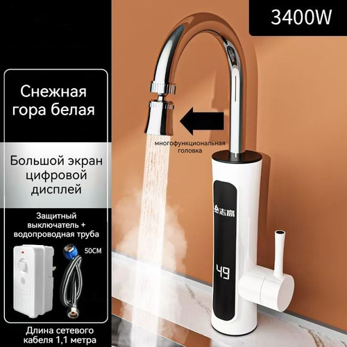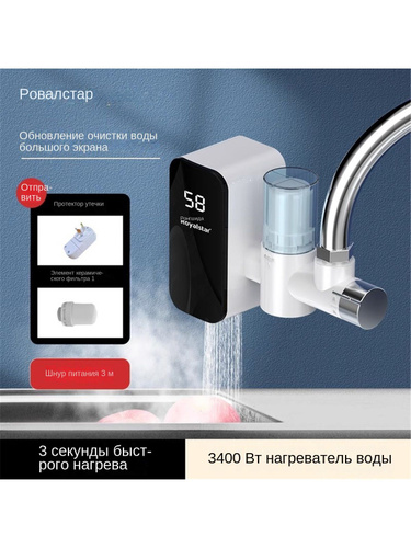 Мгновенный водонагреватель бытовой кухонный кран быстрого нагрева,3400,белый,черный