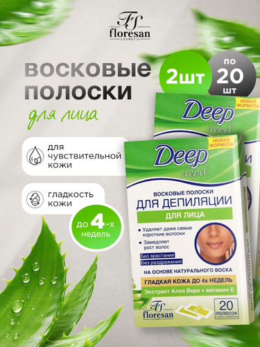 Floresan FS Deep Depil Полоски для удаления волос на лице с Алоэ вера 2упаковки по 20шт