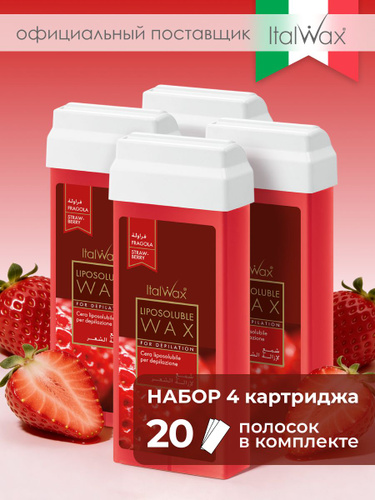 Воск для депиляции в картридже ITALWAX Клубника (теплый воск натуральный) 4 шт + полоски в подарок