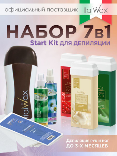 ITALWAX набор для депиляции 7 в 1 (воскоплав, воск в картридже 3шт., полоски, средства для депиляции)