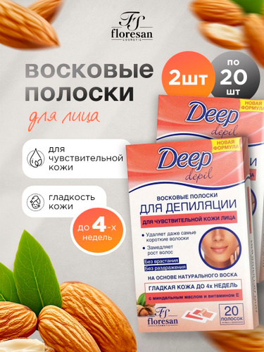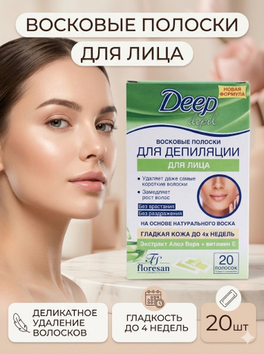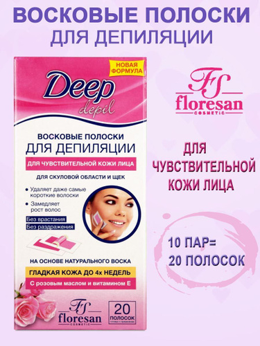 Восковые полоски для депиляции лица, Deep Depil, для чувствительной кожи, 20 шт