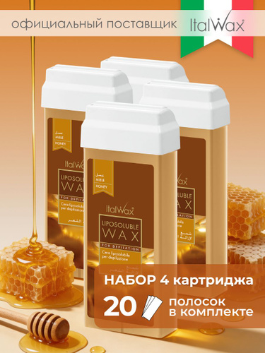 Воск для депиляции в картридже ITALWAX Мед (теплый воск натуральный) 4 шт + полоски в подарок