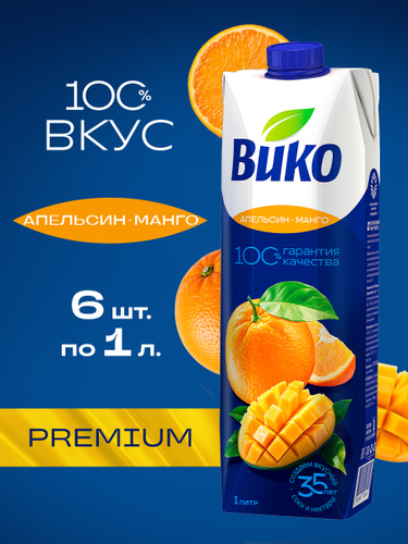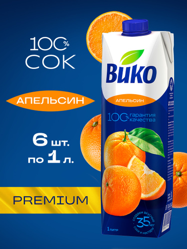 Сок апельсиновый Вико, без сахара, для детей с 3 лет, 1 л х 6 шт.