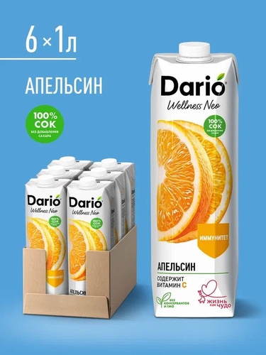 Dario Wellness Neo 1,0 л Апельсиновый сок восстановленный с мякотью, 1 л х 6 шт.