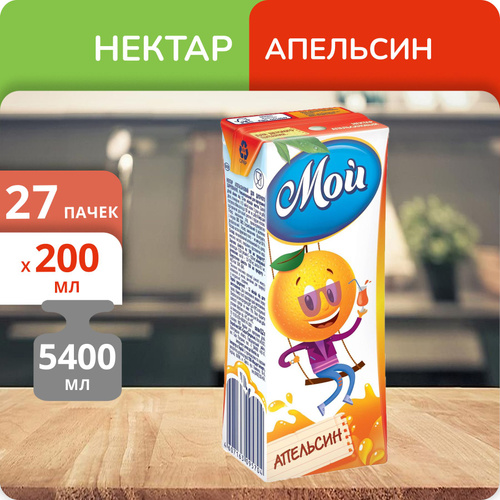 Упаковка 27 пачек Нектар "Мой" Апельсин 0.2л
