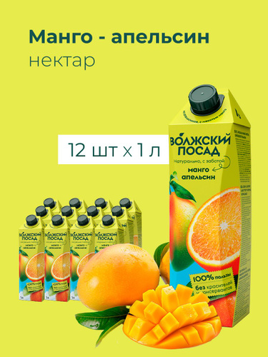 Нектар апельсин - манго с мякотью "Волжский посад" Упаковка 1л, 12 шт