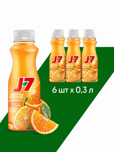 Сок J7 Апельсиновый с мякотью без сахара, 6 шт х 0,3 л