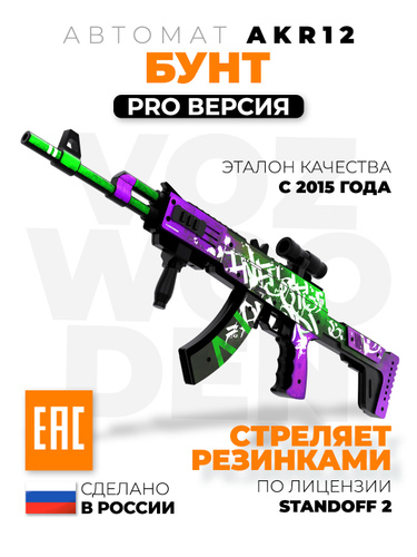 Деревянный автомат AKR 12 Riot из Standoff 2 / игрушечный детский резинкострел АКР 12 Риот из Стандофф 2