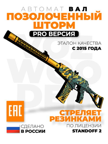 Деревянный автомат Вал Позолоченный Шторм Стандофф 2 / Штурмовая винтовка резинкострел Val Standoff 2