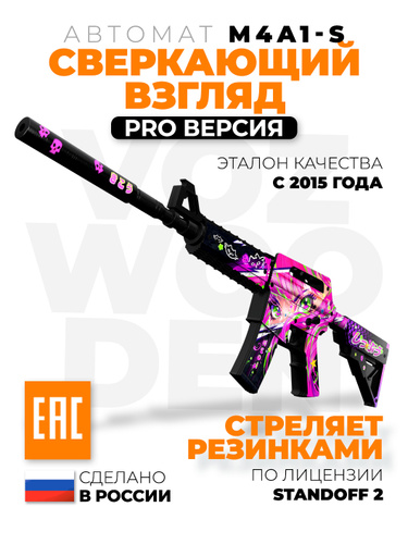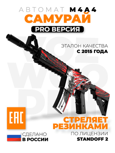 Деревянный автомат М4А4 / М4 Самурай Стандофф 2 Active / Детский игрушечный резинкострел M4A4 Samurai Standoff 2