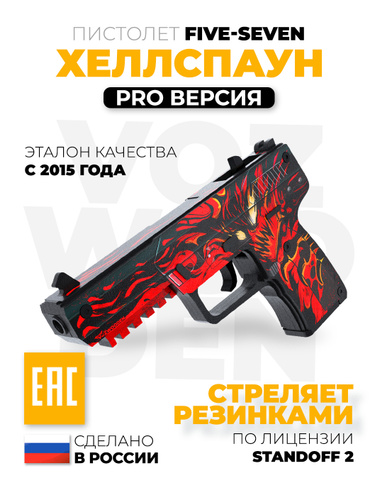 Деревянный пистолет Five-seveN Hellspaun из Standoff 2 / игрушечный детский резинкострел Файв Севен ХеллСпаун Стандофф 2