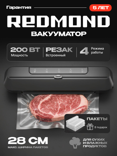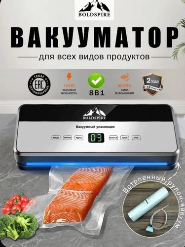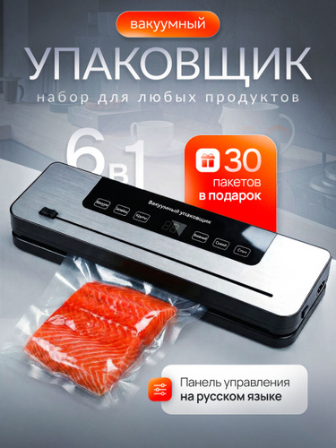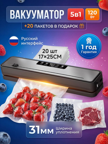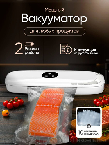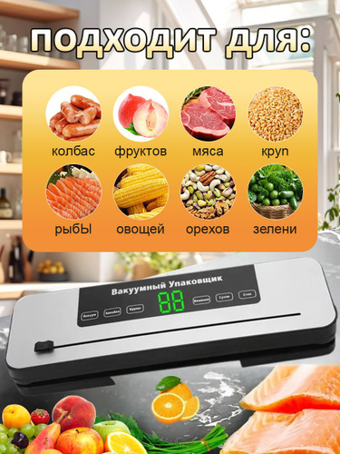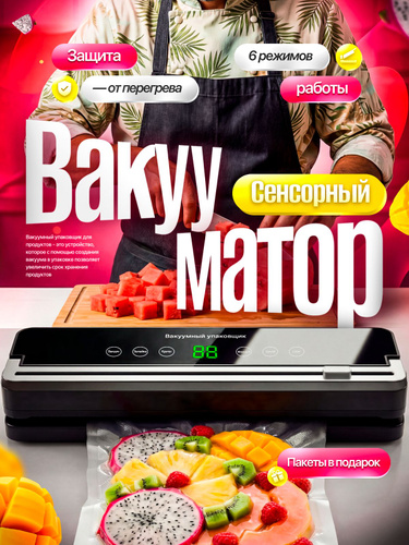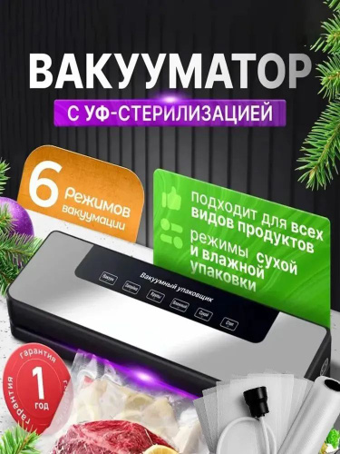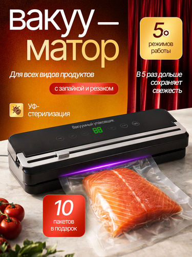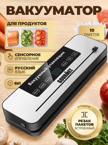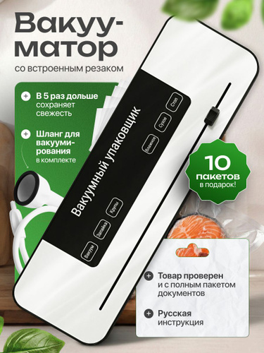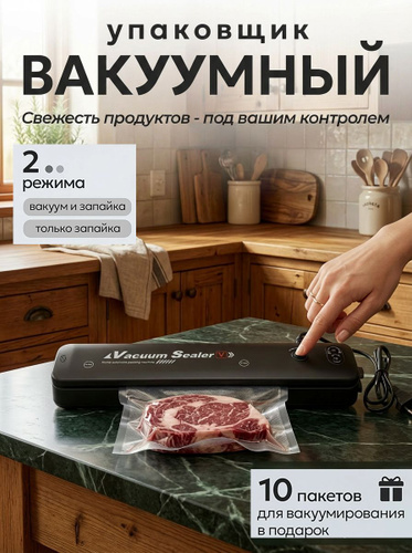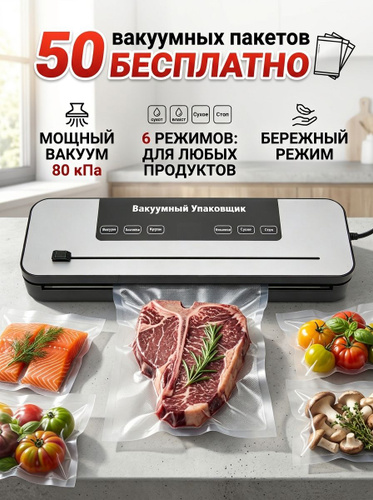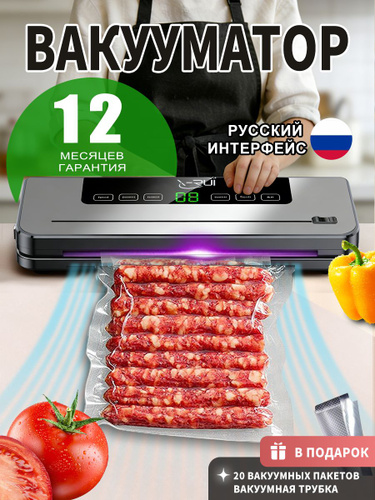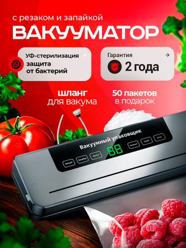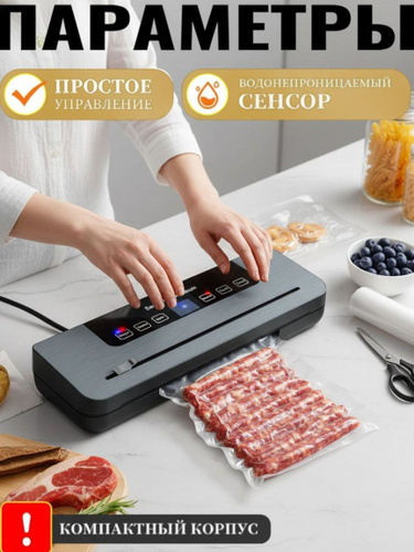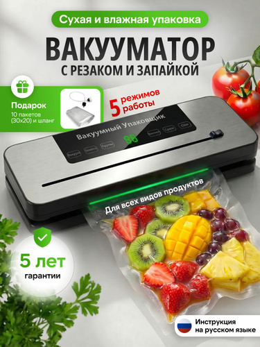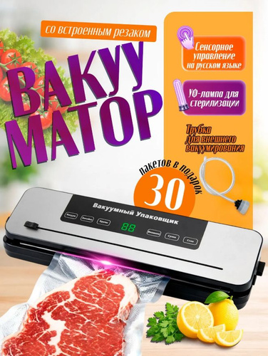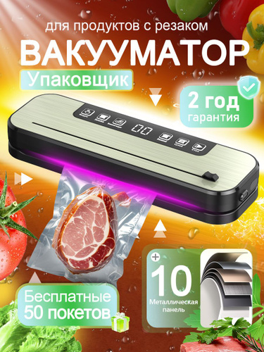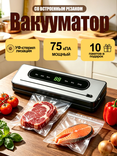 Вакууматор для продуктов с резаком и пакетами, сухой и влажный, компактный