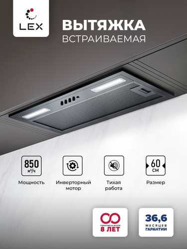 Вытяжка кухонная встраиваемая LEX HYPER 600 Inverter BL,3 скорости, кнопочное управление.