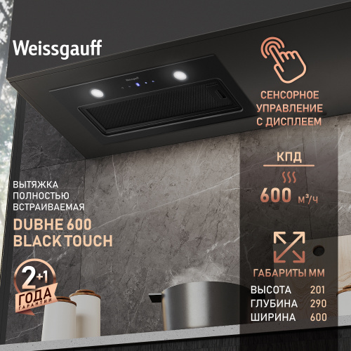 Вытяжка кухонная встраиваемая Weissgauff Aura 1350 BL Premium Touch Inverter WI-FI, Инвертор, Производительность 1350 м3/ч, 9 скоростей, Низкий уровень шума, Режимы отвод и циркуляция
