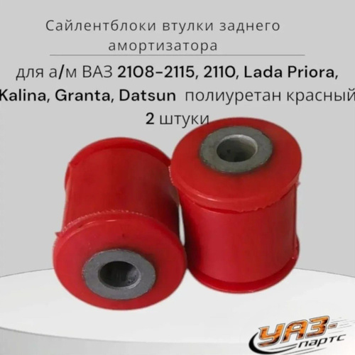 Сайлентблоки втулки заднего амортизатора для а/м Ваз 2108 - 2115, 2110, Lada Priora, Kalina, Granta, Datsun полиуретан красный 2 штуки 2108-2915446-01