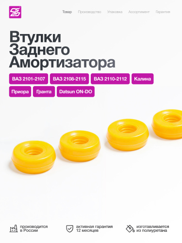 Втулки для а/м ВАЗ 2110; 2111; 2112 заднего амортизатора (верхние) 4 шт, полиуретан