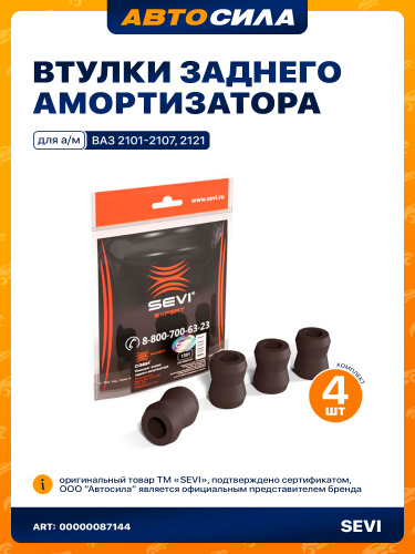Комплект втулок заднего амортизатора SEVI 1307 для а/м ВАЗ: 2108-21099, 2110-2112, 2113-211, 2 шт