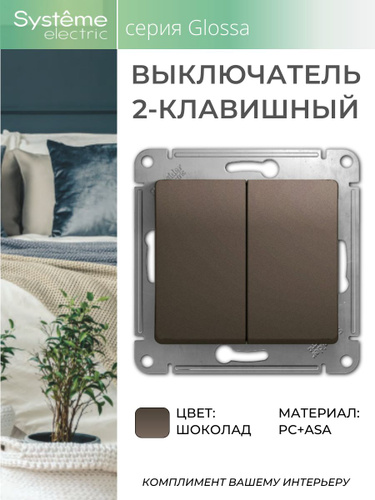 Выключатель двухклавишный 10А шоколад Systeme Electric Glossa GSL000851