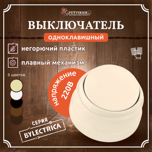 Ретро выключатель А110-2201 бежевый Bylectrica одноклавишный 10А, клавишный