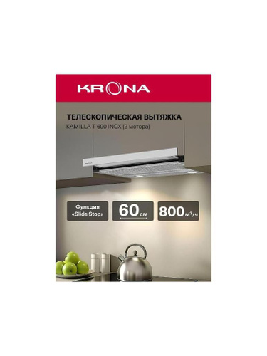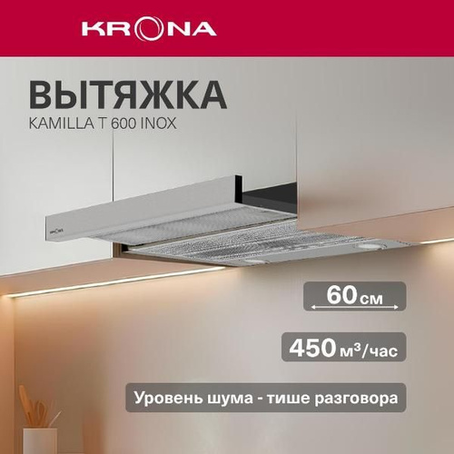 Вытяжка встраиваемая в шкаф Krona Kamilla T 600 Inox (2 мотора) нержавеющая сталь