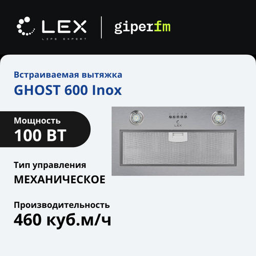 Вытяжка кухонная Lex GHOST 600 Inox, 700 м3/ч, встраиваемая в шкаф