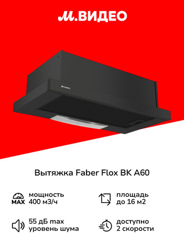 Вытяжка встраиваемая в шкаф Faber FLOX BK A60 Black