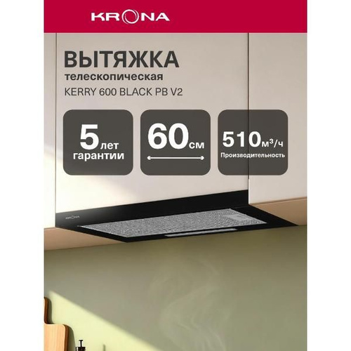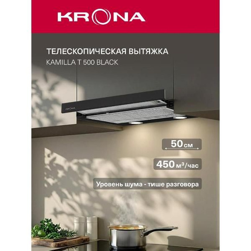 Вытяжка встраиваемая в шкаф Krona KAMILLA T 500 черный черная
