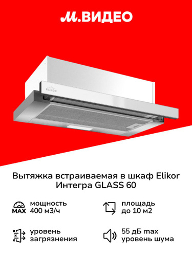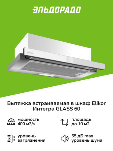 Вытяжка встраиваемая в шкаф 60 см Elikor Интегра GLASS 60 Inox