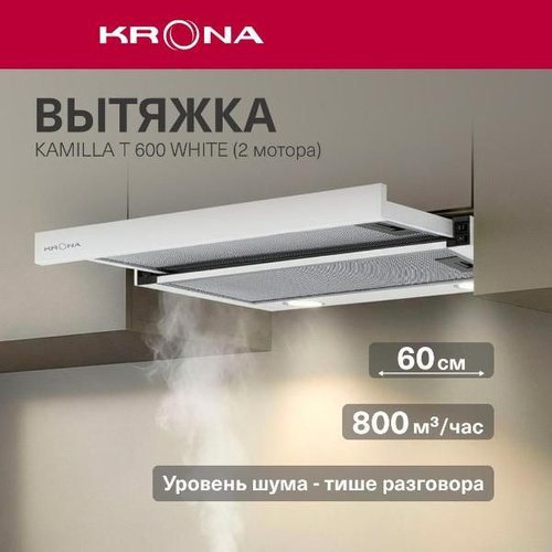 Вытяжка встраиваемая в шкаф Krona Kamilla slim 600 White (2 мотора)
