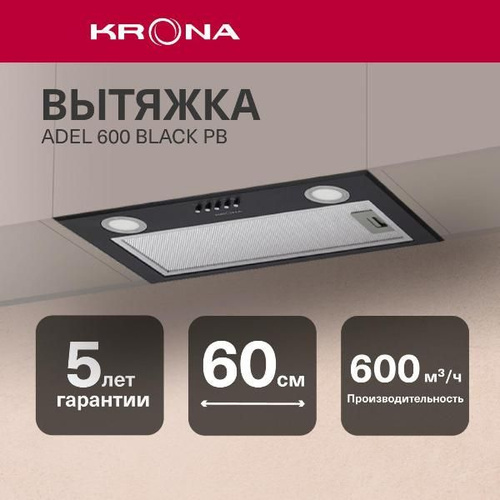 Вытяжка встраиваемая в шкаф Krona ADEL 600 BLACK PB