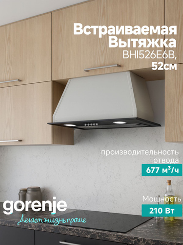 Вытяжка GORENJE BHI526E6B встраиваемая в шкаф 52 см, 677 м/ч, чёрная