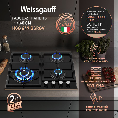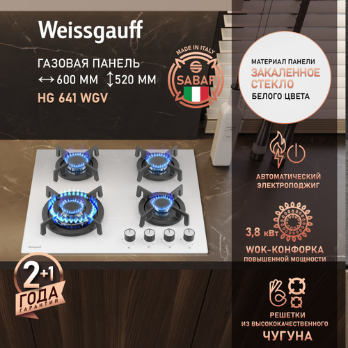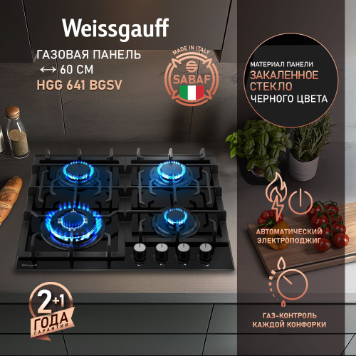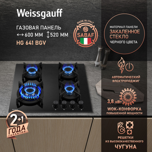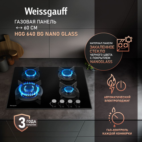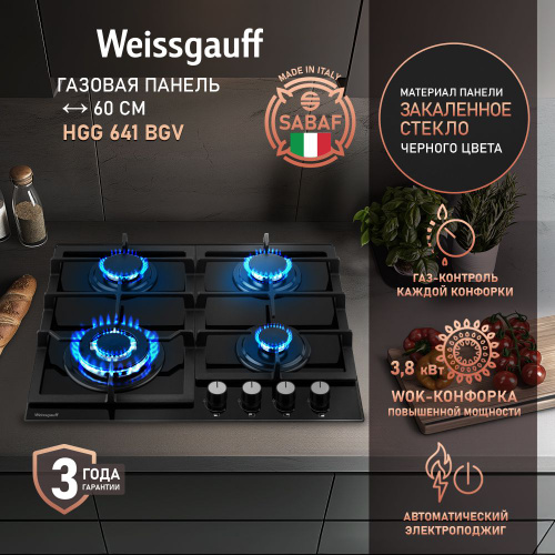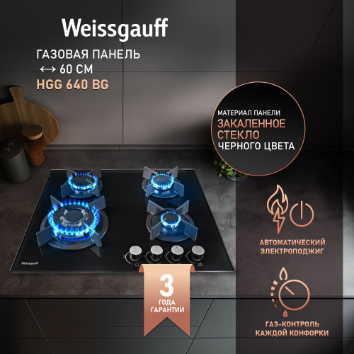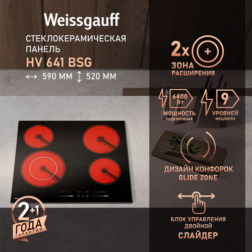 Weissgauff Электрическая варочная панель HV 641 BSG, 4 конфорки, Мощность 6400 Вт, Двухконтурная зона расширения, Сенсорное управление, Двойной Слайдер, 9 уровней мощности, Таймер 99 мин, Защитное автоотключение, Блокировка от детей, черный, прозрачный