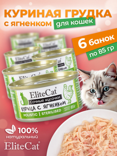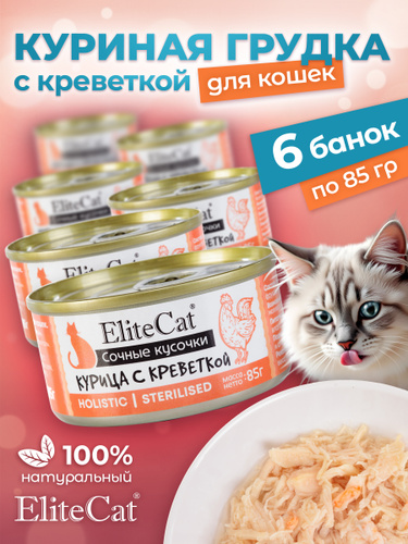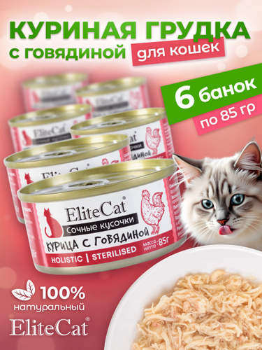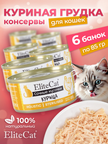 Корм лакомство для кошек влажный ELITECAT консервы сочные кусочки "Курица", 85гр КОМПЛЕКТх6