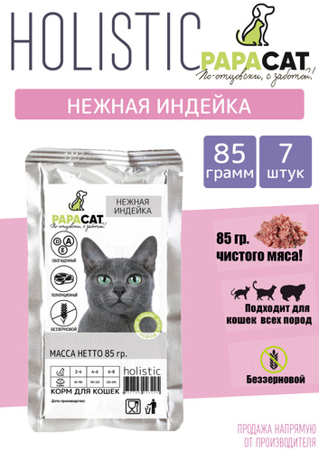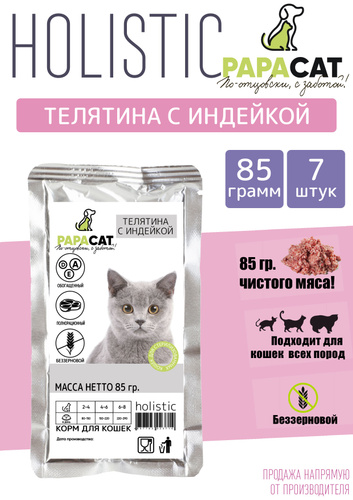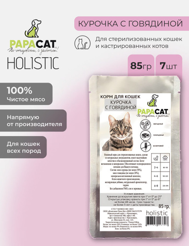Влажный корм для кошек PapaCat холистик класса 85 гр 7 шт
