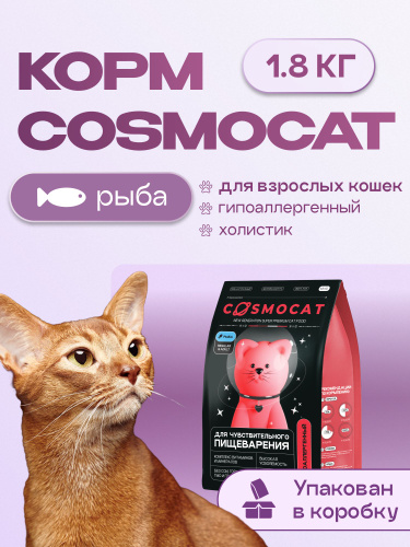 Корм сухой для взрослых кошек Cosmocat от Cosmopet с рыбой 1,8 кг, гипоаллергенный холистик супер премиум класса для котов с чувствительным пищеварением