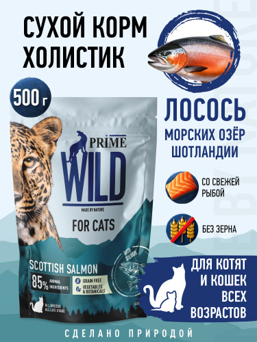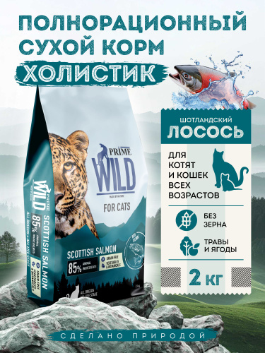 PRIME WILD GF Сухой корм с лососем для котят и кошек, 2 кг