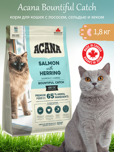 Acana Cat Bountiful Catch 1,8 кг низкозерновой корм для кошек, лосось, сельдь и хек
