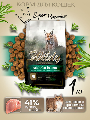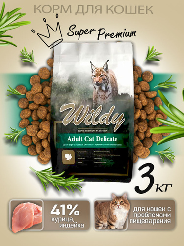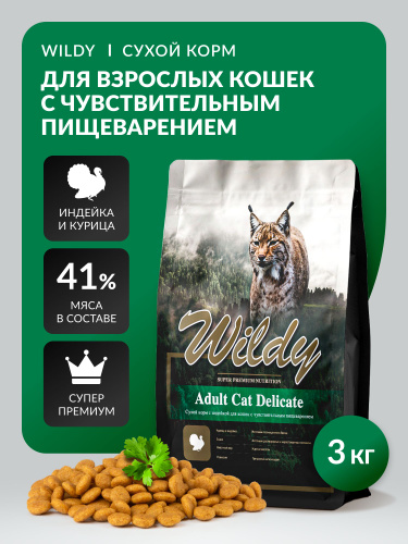 Wildy Adult Cat Delicate Сухой корм с индейкой для кошек с чувствительным пищеварением 3 кг