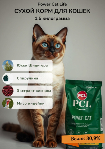 Корм для кошек сухой "PowerCatLife" для стерилизованных. С индейкой и злаками 3 кг.