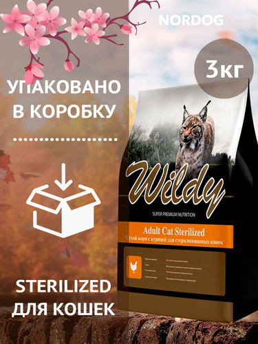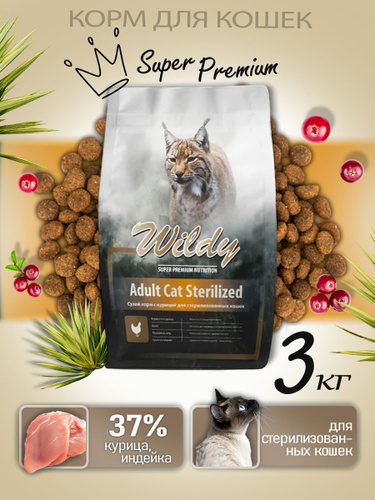 Wildy Adult Cat Sterilized Сухой корм с курицей для стерилизованных кошек и кастрированных котов 3 кг