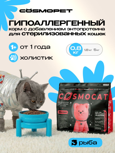 Корм сухой для стерилизованных кошек и котов Cosmocat от Cosmopet с рыбой 0,8 кг, гипоаллергенный холистик супер премиум класса