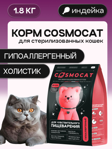 Корм сухой для стерилизованных кошек и котов Cosmocat от Cosmopet с индейкой 1,8 кг, гипоаллергенный холистик супер премиум класса