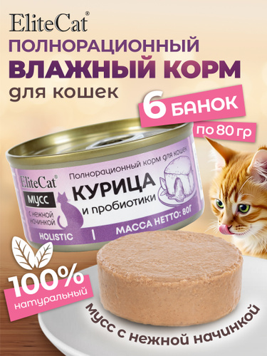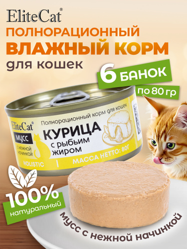 Влажный корм для кошек консервированный ELITECAT "Курица с рыбьим жиром, мусс, 80гр КОМПЛЕКТх6