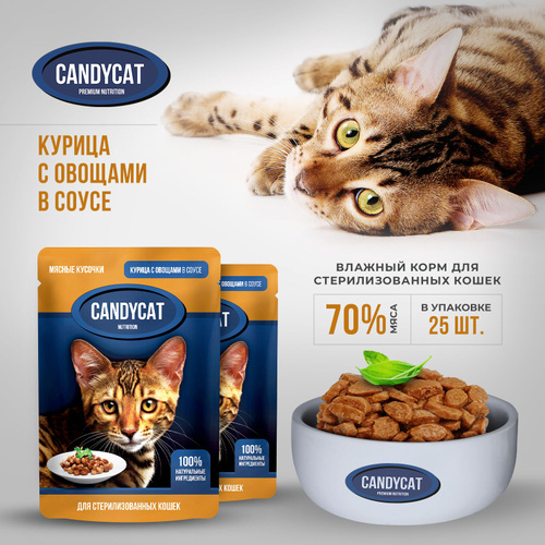 Влажный корм для кошек Candycat, Курица с овощами, для кастрированных и стерилизованных, 25 шт по 85 г