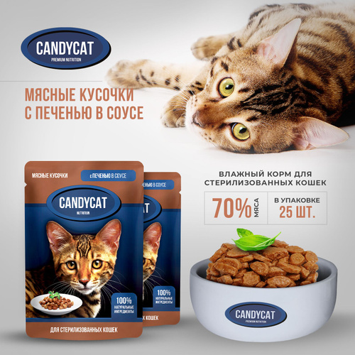 Влажный корм для кошек Candycat, Мясные кусочки с печенью, для кастрированных и стерилизованных, 25 шт по 85 г