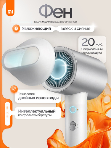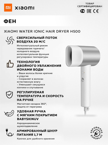 Фен Xiaomi Water Ionic Hair Dryer H500 BHR5851EU, 2 скорости, 3 температурных режима, ионизация