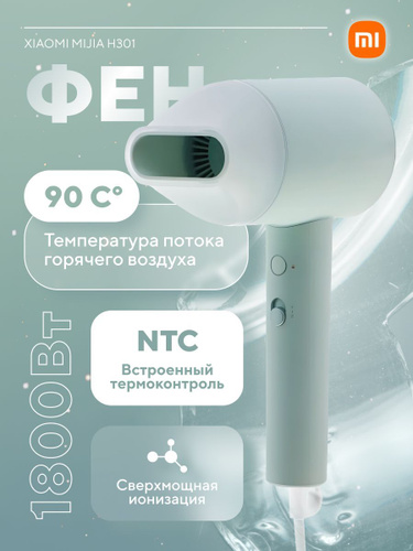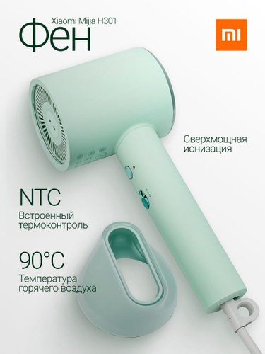 Фен для волос Xiaomi Mijia Negative Ion Hair Dryer H301 зеленый, 1800Вт, мощный, профессиональный, с ионизацией / мини фен для волос дорожный xiaomi mijia маленький