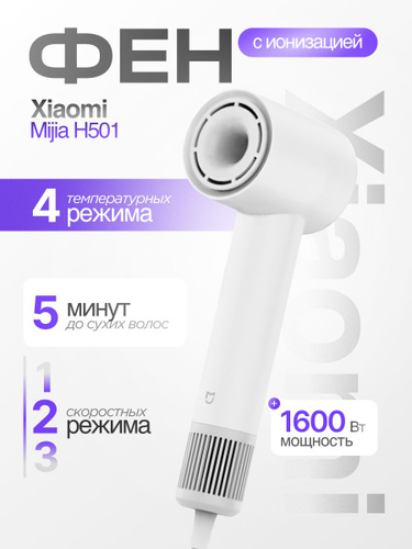 Xiaomi Фен для волос Mijia Water Ion Hair Care Hair Dryer H500 1800 Вт, скоростей 2, белый